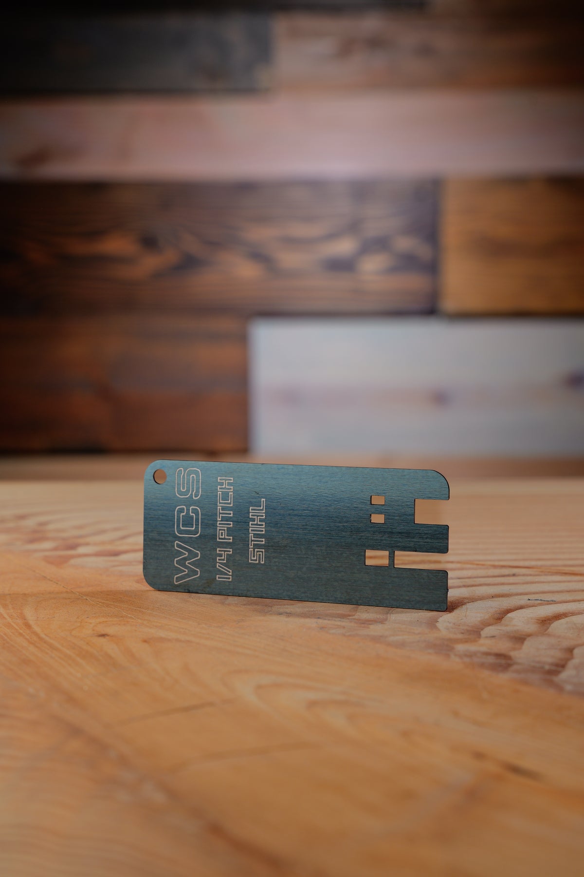 The Westcoast Saw Depth Plate is designed to set raker heights on full-comp, semi-skip and full-skip chains. Crafted from durable high carbon steel, this raker gauge provides precise depth options, starting at 0.025 inches and decreasing in 0.010-inch increments. Its specially designed edge, marked with the WCS logo, also cleans the rail bar for added convenience and maintenance.