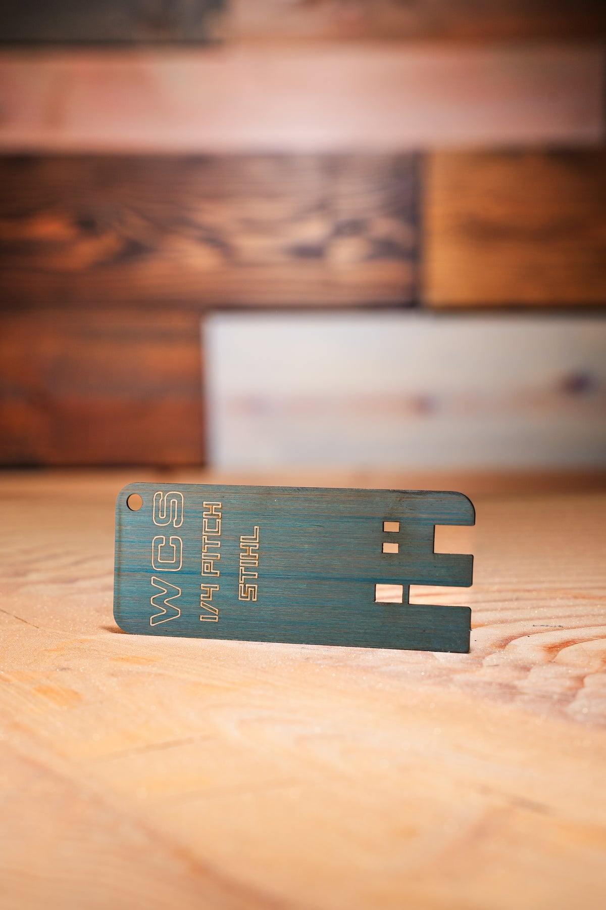 The Westcoast Saw Depth Plate is designed to set raker heights on full-comp, semi-skip and full-skip chains. Crafted from durable high carbon steel, this raker gauge provides precise depth options, starting at 0.025 inches and decreasing in 0.010-inch increments. Its specially designed edge, marked with the WCS logo, also cleans the rail bar for added convenience and maintenance.