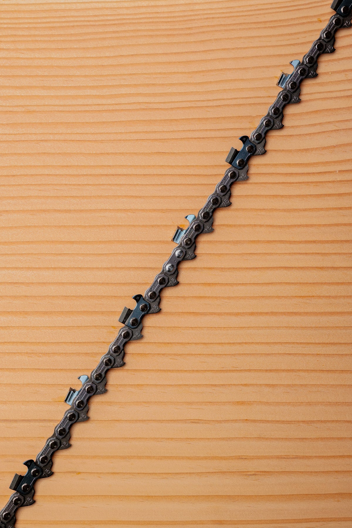 The square ground cutter design can be sharpened with a 3-Corner or double beveled file, but it is very difficult without the use of a guide. Most users sharpen this chain with a chisel chain grinder. Like most Oregon chainsaw chain this style has the LubriTec oiling system to help keep both the bar and chain well lubricated.